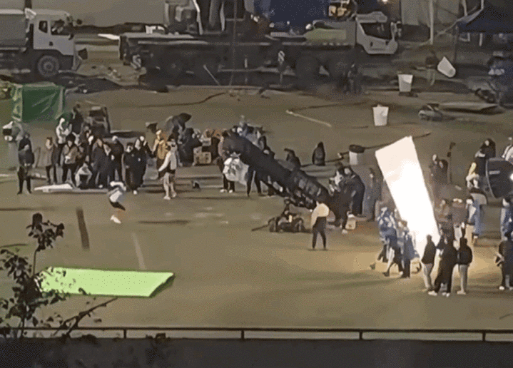 而拍摄阶段,有关《女足》的路透,还有大量的动作戏,演员吊着威亚直接飞出十几米远。