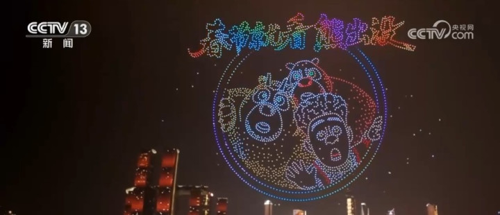 在“新韵重庆”无人机灯光秀表演上,“春节就看熊出没”和“全家一起更欢乐”的机组造型出现在夜空上,引得现场观众举起手机拍摄,也为这个春节增添了很多童趣。作为《熊出没》的主要取景地,几天前在重庆两江四岸的楼宇外墙上,也上演了《熊出没》主题楼宇灯光秀“空中连环画”。